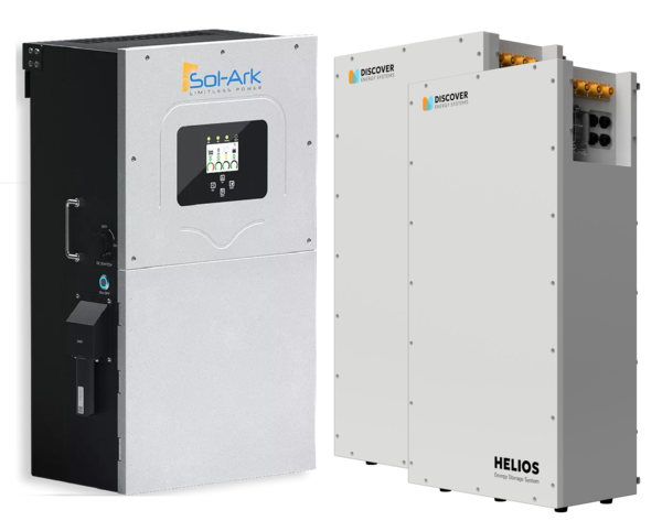 Pairing the Sol-Ark 15K-2P Hybrid Inverter with two (2) Discover Helios batteries delivers a whole-home backup power solution built for performance, resilience, and scalability. An ideal choice for home an easy turnkey solution for homeowners seeking energy independence and long-term cost savings.
